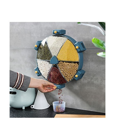 Quick view Add to cart Wishlist 360° Rotating Kitchen Grain... Price MAD205.00 Wall-Mounted 360° Rotating Cereal Dispenser with 6 Compartments – Rice & Grain Storage Box