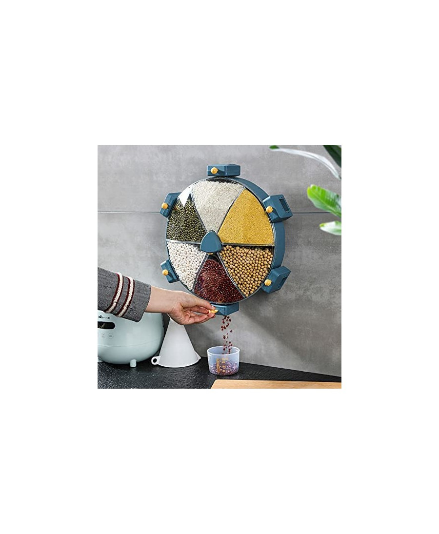 Wall-Mounted 360° Rotating Cereal Dispenser with 6 Compartments – Rice & Grain Storage Box