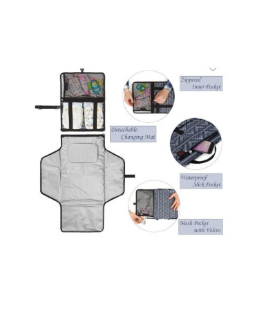 Baby mattress portable travel kit with removable changing mat – fully padded – mesh fabric and zippered pockets.