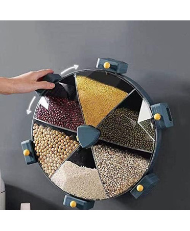 Dispensador de Cereales de Pared Giratorio 360° con 6 Compartimentos – Caja de Almacenamiento para Arroz y Granos