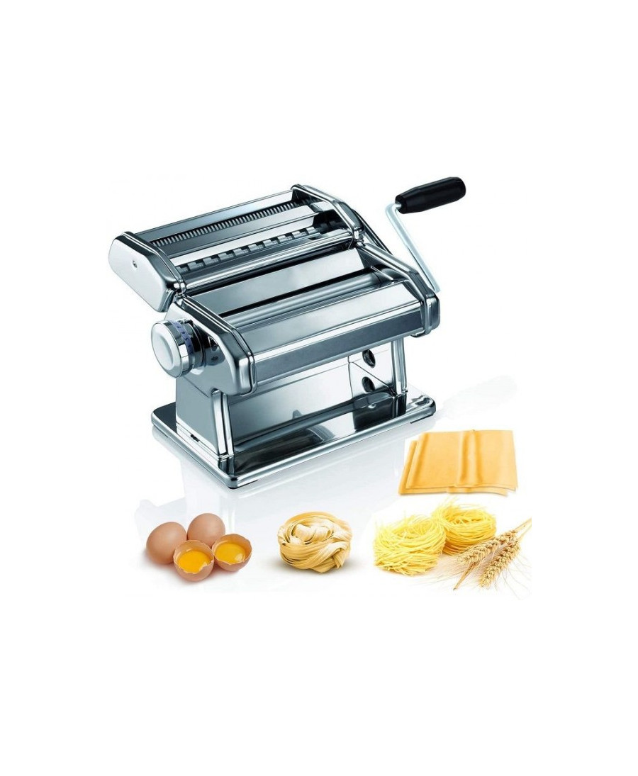 ¿Se te antoja pasta fresca, auténtica chbakia o unos raviolis caseros irresistibles? Con la máquina de pasta Lamacom de 18 cm en acero inoxidable, podrás crear recetas deliciosas en casa. Incluye cortador de pasta, manivela y cuchilla para espaguetis/tagliatelle, y gracias a su resistente tornillo de sujeción se fija con total estabilidad a tu mesa de trabajo.