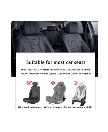• Diseño telescópico – La barra de soporte está fabricada en material ABS de alta calidad, estable y seguro. La anchura de la almohada puede ajustarse según el ancho del asiento. Nota: No apto para todos los tipos de coches; solo puede montarse en asientos con palancas de reposacabezas.