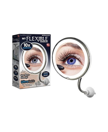 Flexible Miroir Grossissant Lumineux Mural 10X Miroir LED Maquillage Professionnel avec Ventouse et Flexible Col de Cygne Miroir LED Pivotant à 360...