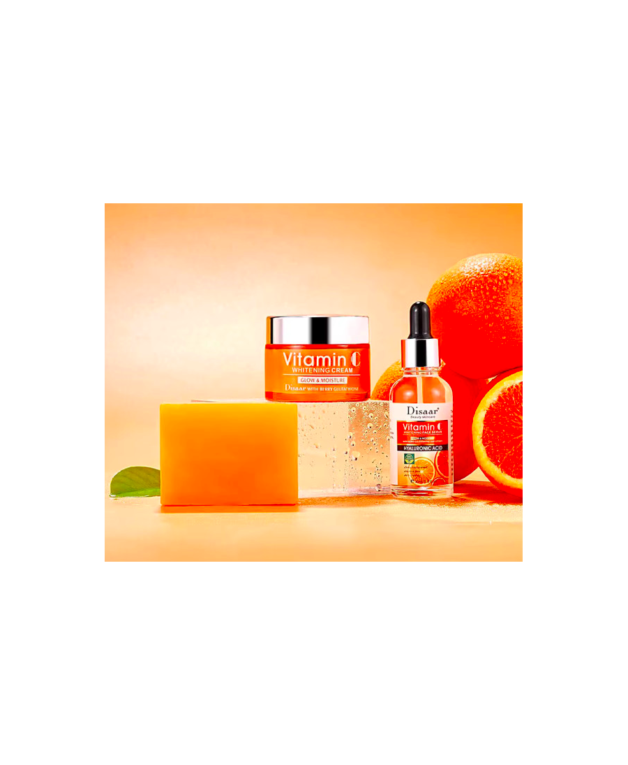 Le Pack Soin Visage Disaar Vitamine C est votre solution complète pour une peau éclatante, unifiée et sans taches, tout en bénéficiant d'une hydratation optimale et d'une protection durable.