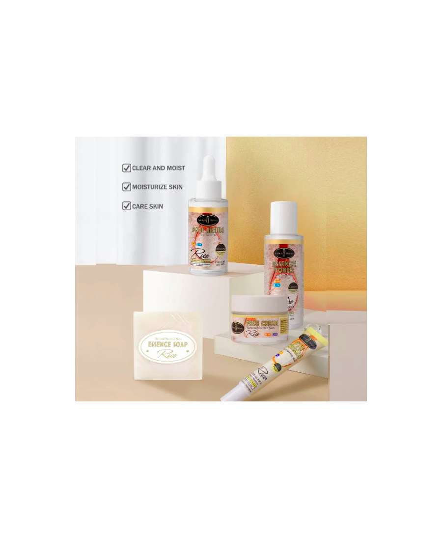 Le riz est l'une des sources les plus anciennes de nutriments pour la peau, remontant aux premières geishas japonaises. Ce coffret de soins du visage au riz (5 pièces) est un produit de soin doux pour la peau, qui la polit à la perfection. Il convient à tous les types de peau.